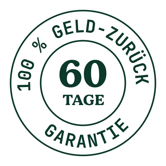 Unsere 60-tägige 100%ige Geld-zurück-Garantie gilt sogar für geöffnete Pakete und weniger als 2% nehmen sie in Anspruch!