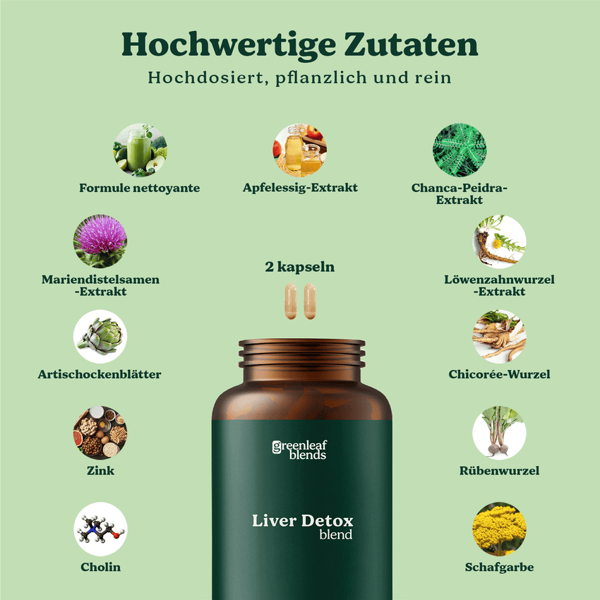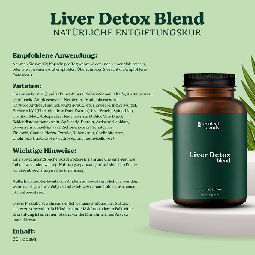 Die Liver Detox Blend wurde nach neuesten wissenschaftlichen Erkenntnissen entwickelt und nutzt die patentierte Liver-Detox Technology™. Diese Formel kombiniert sorgfältig ausgewählte Inhaltsstoffe, deren Wirksamkeit in verschiedenen Studien nachgewiesen wurde, um die Leber optimal zu unterstützen und zu revitalisieren. Durch die Synergie dieser Inhaltsstoffe bietet die Liver Detox Blend eine wirksame Unterstützung der Leber, die für die Ausscheidung von Giftstoffen und die Förderung von Gesundheit und Wohlbefinden unerlässlich ist.