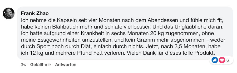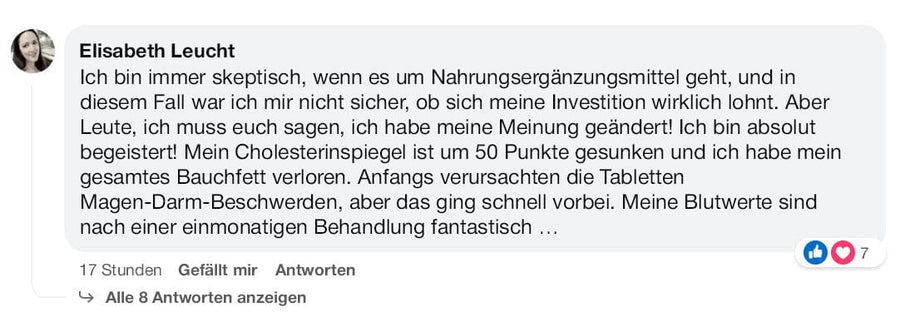 "Nachdem ich mehrere Nahrungsergänzungsmittel erfolglos ausprobiert hatte, stieß ich auf die Liver Detox Blend. Anfangs war es etwas gewöhnungsbedürftig, die Kapseln täglich einzunehmen, aber die Ergebnisse sprechen für sich. Sie hat sich nicht nur einen festen Platz in meiner Routine erobert, sondern ich kann endlich wieder abnehmen. Ich habe alles versucht, um mein Bauchfett loszuwerden, und mit dieser Methode habe ich endlich wieder sichtbare Ergebnisse erzielt. Viele Kilos sind schnell verschwunden, was ich vorher für unmöglich gehalten hatte. Als ich die Einnahme des Nahrungsergänzungsmittels pausierte, bemerkte ich sofort eine Verschlechterung meines Wohlbefindens, was mich darin bestätigt, es weiter einzunehmen. Ich bin äußerst zufrieden mit den Ergebnissen." – Laura Stahl