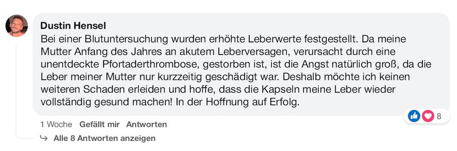 Ich möchte meine Erfahrungen mit der Liver Detox Blend teilen, weil sie mir nicht nur beim Abnehmen geholfen, sondern auch wesentlich zu meiner allgemeinen Fitness beigetragen hat. Jahrelang kämpfte ich mit überschüssigen Pfunden und Energiemangel, ohne wirklich zu verstehen, warum. Keine Diät und kein Trainingsprogramm schienen zu helfen. Glücklicherweise entdeckte ich, dass eine Fettlebererkrankung eine wichtige Rolle in meinem Kampf gegen die Pfunde spielte. Nachdem ich mit der Liver Detox Blend begonnen hatte, bemerkte ich schnell eine Veränderung. Es war, als würde mein Körper endlich auf meinen gesunden Lebensstil reagieren. Ein Kilogramm nach dem anderen purzelte, und mein Energielevel stieg sprunghaft an. Zum ersten Mal seit Jahren fühlte ich mich nicht nur leichter, sondern auch vitaler und gesünder. Die Erkenntnis, dass eine Fettlebererkrankung einen so großen Einfluss auf Gewichtsverlust und allgemeine Gesundheit haben kann, war für mich eine Offenbarung. Deshalb verspüre ich jetzt das starke Bedürfnis, meine Geschichte zu teilen und andere über die Bedeutung einer gesunden Leber aufzuklären. Die Liver Detox Blend hat mein Leben verändert, und ich bin fest davon überzeugt, dass sie auch anderen helfen kann. Ob Sie mit dem Abnehmen kämpfen oder einfach nur ein gesünderes Leben anstreben, dies könnte das fehlende Bindeglied sein. in Ihrem Puzzle." - Markus W.